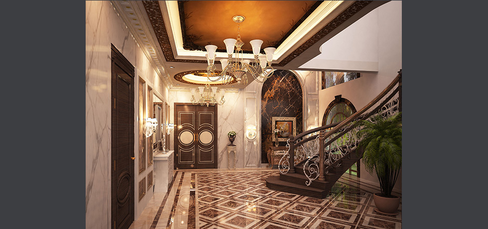 This residence is known for its grandeur and exquisite. It gives a feeling of royalty and the overall experience proves to be very ornamental and embellished. The extortionate feeling is overwhelming. The subtle hints of bright colours and elaborate flooring designs generate curiosity and interest in the design.